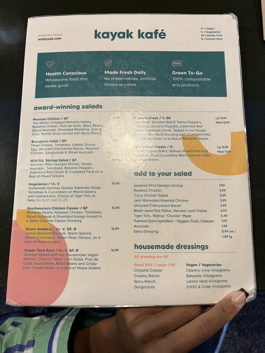 Vegetarian/vegan. Homemade hummus and Quinoa, Kalamata olives, tomatoes and cucumbers on organic greens with toasted pita. Choice of organic tiger tofu or feta. Served with your choice of homemade dressing.