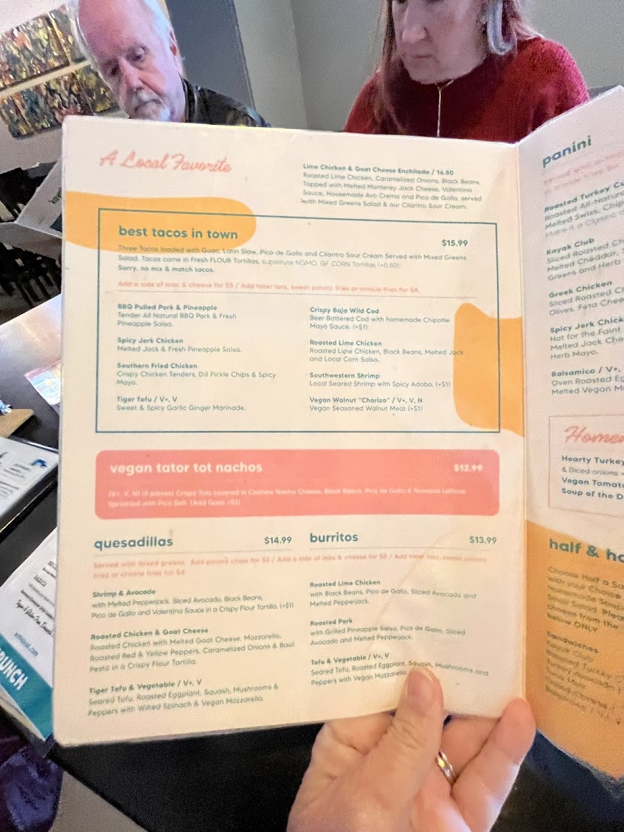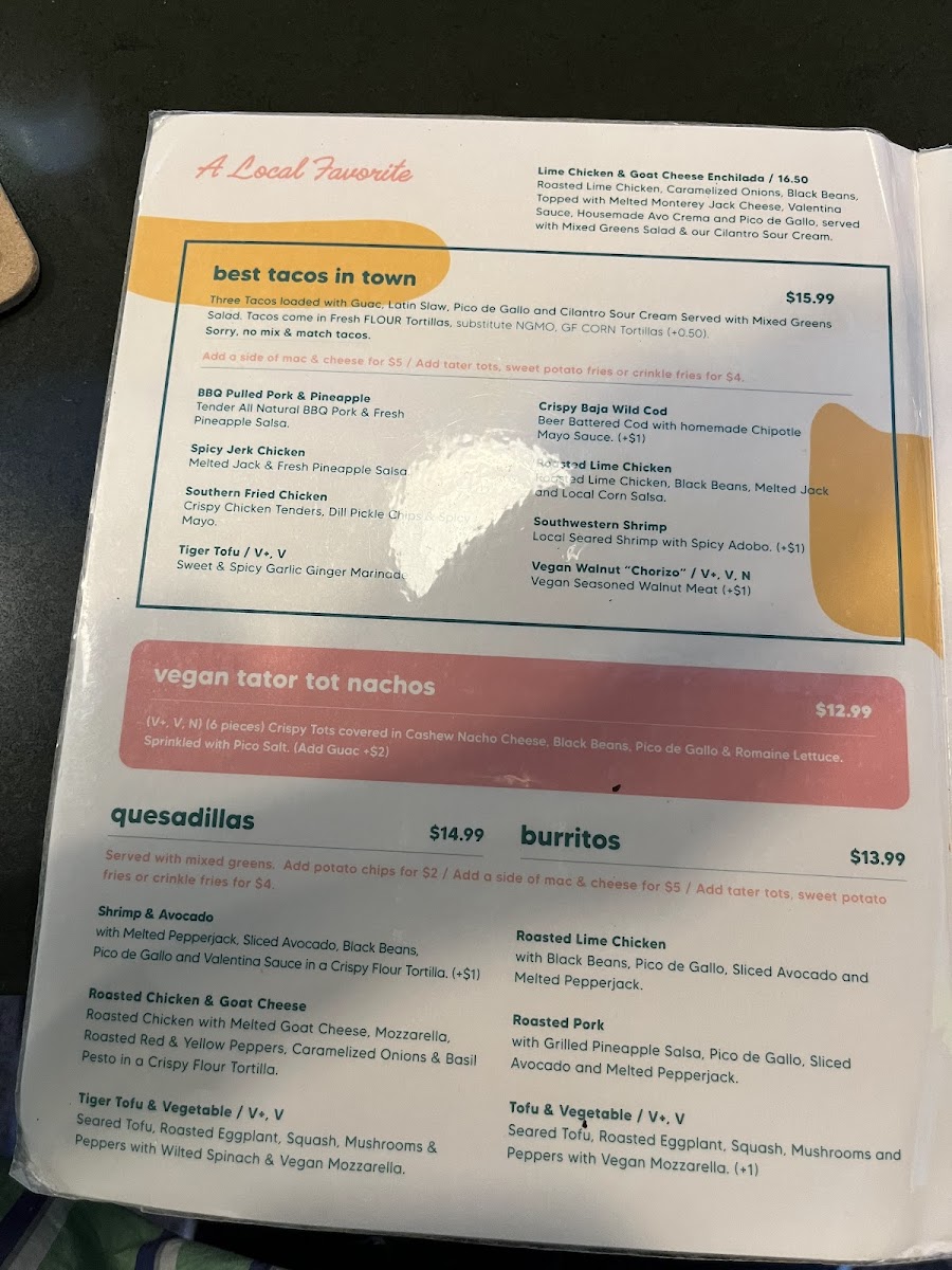 House Made Vegan Cashew cheese, black beans, lettuce, pico de gallo and sprinkled with pico salt